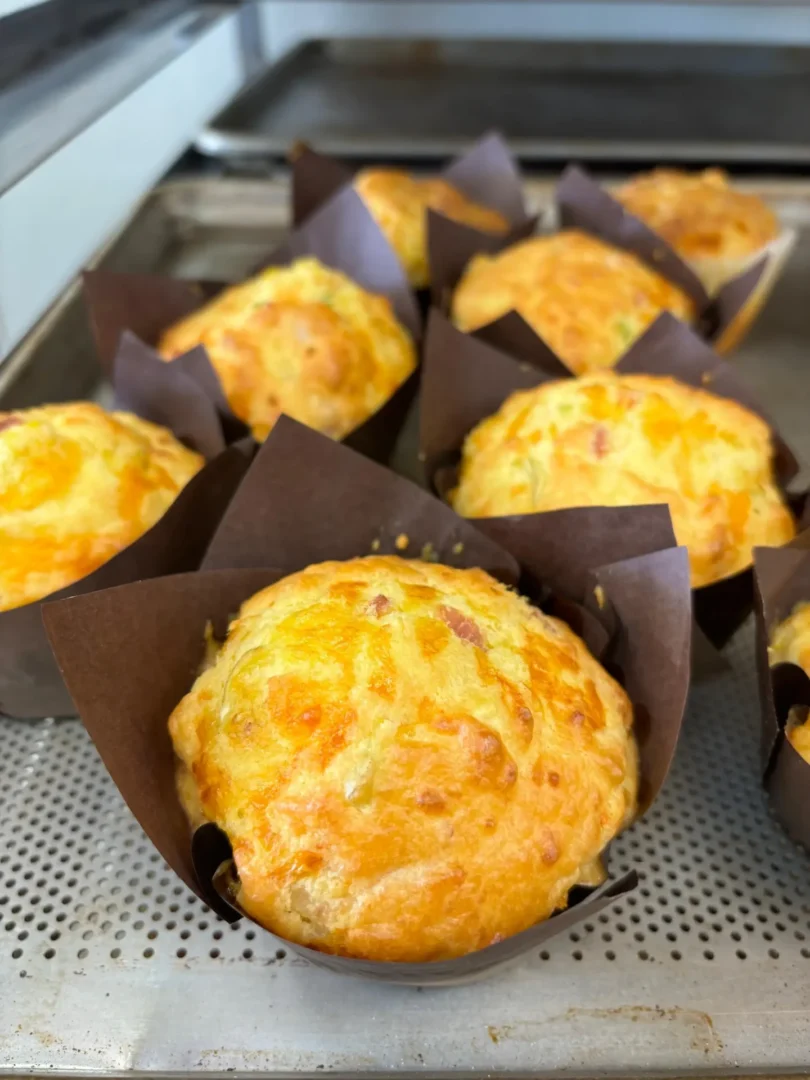This is a must! Our Cheddar Cheese, Bacon, and Corn muffin perfect for breakfast!